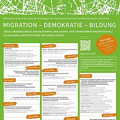 „Renommierte Wissenschaftler:innen und Publizist:innen sowie Expert:innen aus Politik, Behörden und freien Bildungsträgern beleuchten in den wöchentlich stattfindenden Vorlesungen und Podiumsgesprächen gemeinsam mit unseren Studierenden und interessierten Gästen Dynamiken von Migration und Demokratie in Gesellschaft und (Bildungs)-Institutionen“, informiert Prof.‘in Dr. Mechtild Gomolla, Initiatorin der Ringvorlesung und Leiterin des PHKA-Arbeitsbereichs Interkulturelle Pädagogik und Bildungsgerechtigkeit sowie des PHKA-Masterstudiengangs Interkulturelle Bildung, Migration und Mehrsprachigkeit.