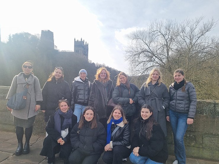 Zwölf Studierende des Fachs Englisch reisten vom 3. bis 8. März 2025 in die nordenglische Universitätsstadt Durham, begleitet von Institutsleiterin und Vertretungsprofessorin Dr. Raphaëlle Beecroft und der akademischen Mitarbeiterin Annette Becker, M.A. Sie besuchten und gestalteten Seminare der Durham University, einer der Erasmus+-Partnerhochschulen der PHKA, nahmen gemeinsam mit englischen Kommiliton:innen an einem von Dr. Petra Bauer, Assistant Professor an der School of Modern Languages and Cultures der Durham University, und Vertr-Prof. Dr. Beecroft geleiteten Übersetzungs-Workshop teil und hospitierten und unterrichteten an zwei Schulen, wo jeweils sechs Studierende wertvolle Erfahrungen für ihre eigene Unterrichtspraxis sammeln konnten. Hier profitierten sie von der Zusammenarbeit sowohl mit der Durham School und Kontaktlehrerin Louise Hinde als auch mit der St Leonard’s Catholic School und Kontaktlehrer Martin Hodgson, die den Besuch bereits im Vorfeld aktiv begleiteten.