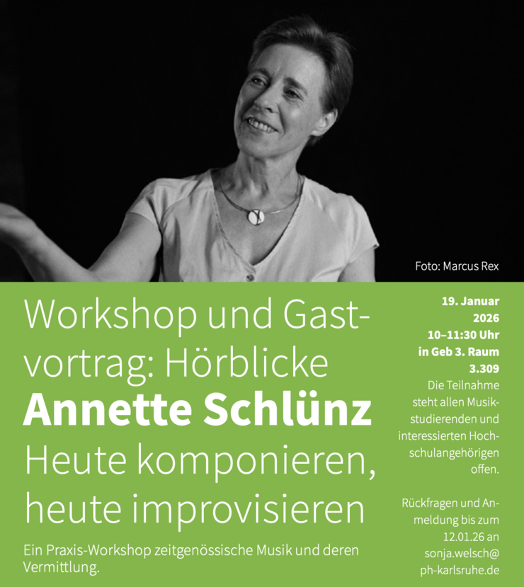 Die Teilnahme steht allen Musikstudierenden und interessierten Hochschulangehörigen offen. Rückfragen und Anmeldung bis zum 12.01.2026 an sonja.welsch@ ph-karlsruhe.de