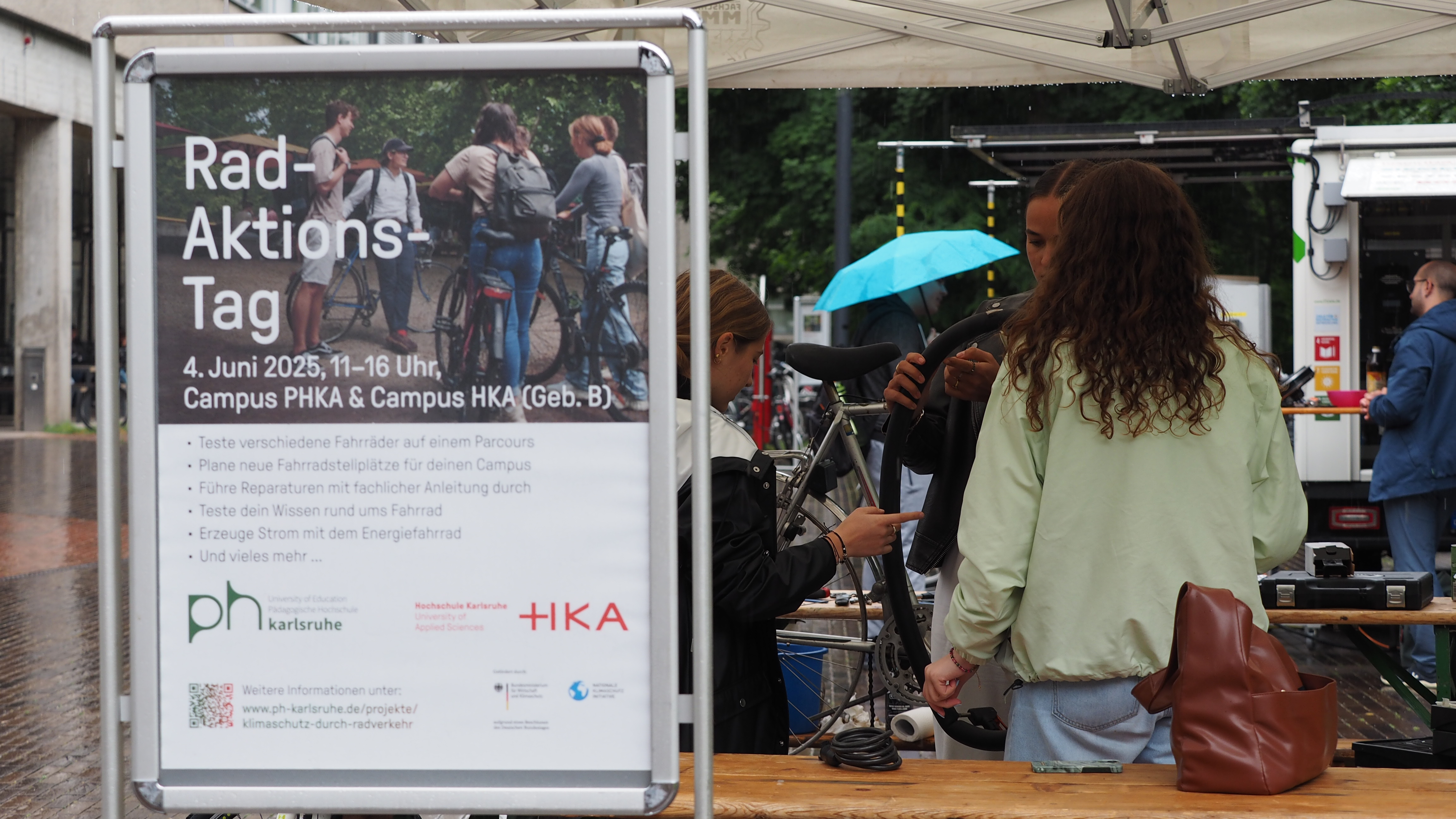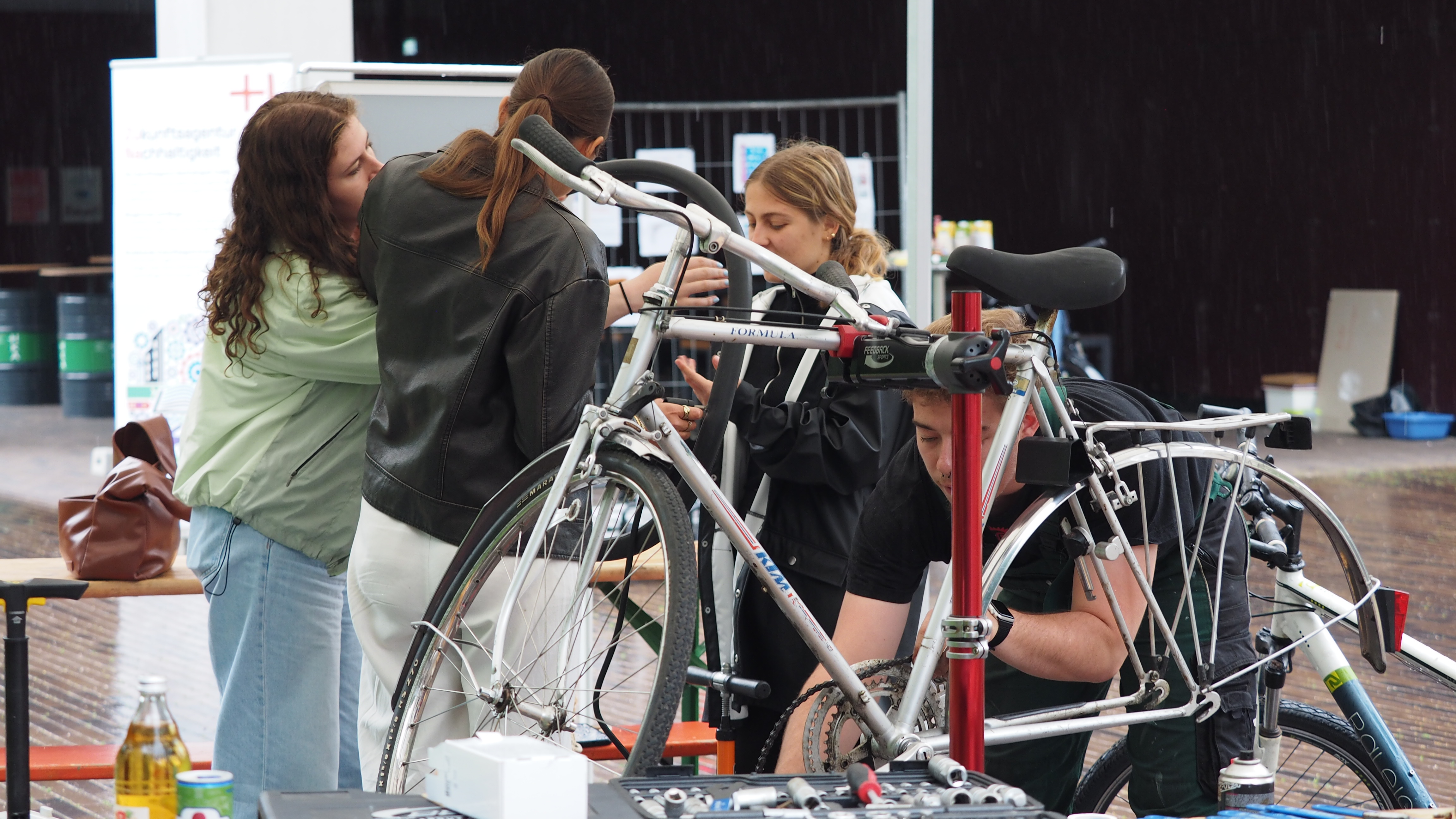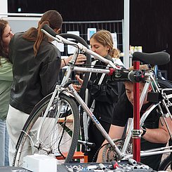 - eine stationäre und eine mobile Fahrradwerkstatt als Treffpunkt für alle Radfahrenden sowie