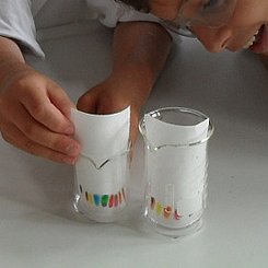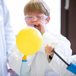 An unserem außerschulischen Lernort können seit 2006 Grundschulklassen der Klassenstufen 3 und 4 an einem Praktikumsvormittag die faszinierende Welt der Chemie anhand von altersgemäßen Experimenten erleben. Es sollen Einsichten entstehen, dass z.B. Luft nicht „Nichts“ ist oder dass in Wasser gelöste Stoffe wie z.B. Zucker nicht verschwunden sind und sogar wiedergewonnen werden können. Damit wollen wir erreichen, dass bei den Kindern Interesse, Akzeptanz und Begeisterung für naturwissenschaftliche Fragestellungen und Lösungen entstehen und gefördert werden.