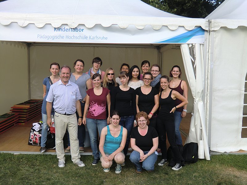 Im Jahr 2013 zog das KinderLabor des Instituts für Chemie das erste Mal im Rahmen von EFFEKTE in eines der Zelte im Experimentepark und wurde sofort zum Publikumsmagneten für Groß und Klein. Seitdem ist das Zelt mit den vielen Kindern in Laborkitteln und mit Schutzbrillen vom Gelände des Wissenschaftsfestivals am Sonntag des Abschlusswochenendes nicht mehr wegzudenken. Und es folgten viele weitere erfolgreiche Aktivitäten der Pädagogischen Hochschule Karlsruhe in die Zelte, die es sich alle zum Ziel gesetzt haben auf unterhaltsame, spannende und verständliche Weise Themen aus der Mathematik, der Informatik, der Naturwissenschaften und der Technik ihren jungen Besucherinnen und Besuchern näher zu bringen. So auch im Jubiläumsjahr 2023 am Sonntag, den 25. Juni: Im „Mathekosmos zum Anfassen“ laden Dr. Thomas Borys und seine Studierenden ein zum Sonnenuhren Basteln, der Entdeckung mathematischer Muster, Zahlen in Steine zu ritzen wie im alten Rom und nicht zuletzt der Verschlüsselung geheimer Botschaften. Ein Zelt weiter findet sich das gemeinsame Lehr-Lern-Labor Informatik von PHKA und KIT. Hier können Denkweisen der Informatik hautnah erfahren werden. In verschiedenen Programmier-Challenges können Schülerinnen und Schüler interaktiv erleben, was Algorithmen bewirken und in die faszinierende Welt der Programmierung einsteigen. Und in einem Doppelzelt präsentiert sich das Lehr-Lern-Labor „Kinder experimentieren“: An Stationen zu den Themen LUFT, WASSER, ENERGIE, KOHLENSTOFFDIOXID, FARBEN, FEUER können Kinder unter Anleitung von Dr. Wolfgang Schmitz und PHKA-Studierenden wichtigen Fragen nachgehen wie „Was benötigt eine Flamme, um zu brennen? Wie können Gummibärchen tauchen, ohne nass zu werden? Und woraus besteht eigentlich Brausegas?“ und so Elementares aus der Chemie erfahren.