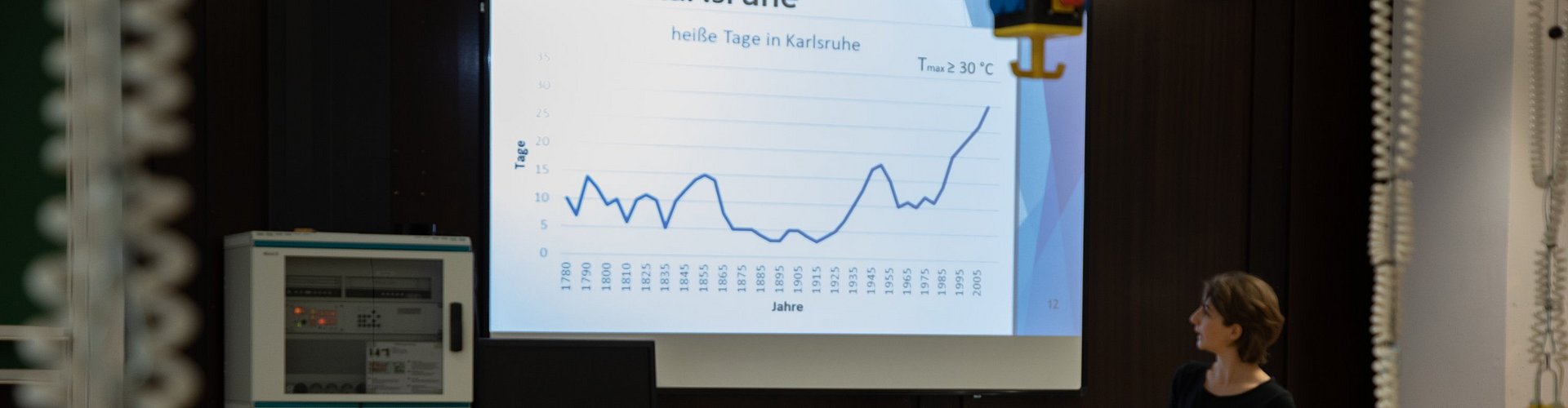 Gemeinsam mit den Schüler:innen wird die Karlsruhe Klimareihe untersucht. Dabei handelt es sich um Klimadaten aus Karlsruhe für die letzten 240 Jahre, die aus über 250.000 Datenpunkten besteht. Anhand verschiedener Analyseverfahren wird untersucht, ob Veränderungen im Karlsruhe Klima zu beobachten sind.
