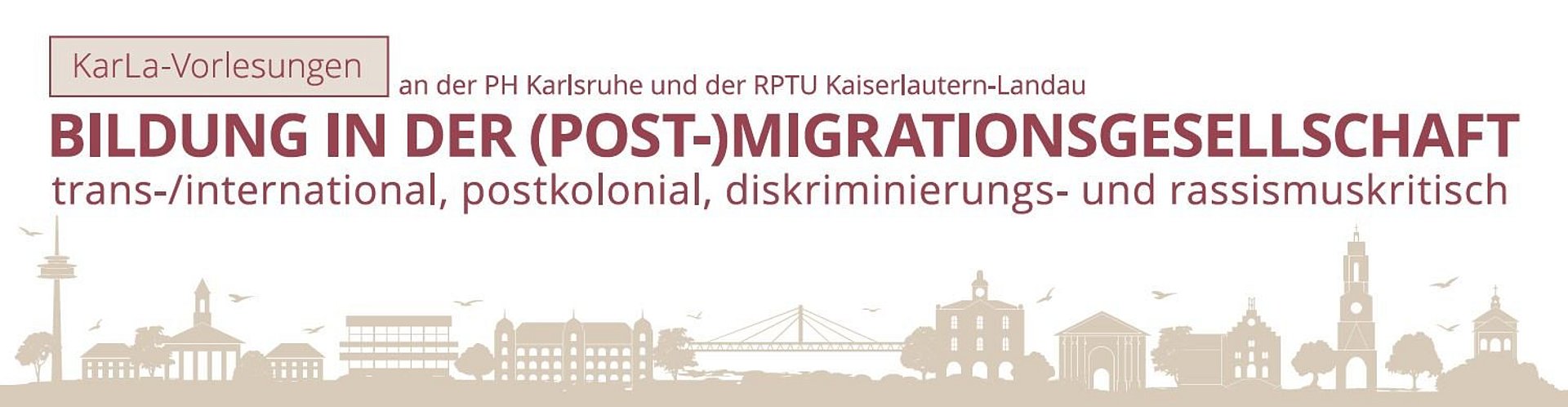 Die im Sommersemester 2025 erstmalig von den Arbeitsbereichen "Interkulturelle Pädagogik und Bildungsgerechtigkeit" an der Pädagogischen Hochschule Karlsruhe und "Interkulturelle Bildung" an der RPTU Landau veranstalteten KarLa-Vorlesungen schaffen einen Raum für Reflexion, Debatte und Vernetzung. In dem hochschul- und länderübergreifenden Kooperationsprojekt beleuchten renommierte Expert:innen aus dem In- und Ausland aktuelle gesellschaftliche und institutionelle Herausforderungen und diskutieren innovative Ansätze für eine inklusive, diskriminierungskritische und demokratieorientierte Bildungspraxis - von schulischer und universitärer BIldung, speziell der Lehrer:innenqualifizierung über Erinnerungskulturen bis hin zu migrantischen Bildungsinitiativen und kultureller Bildung.