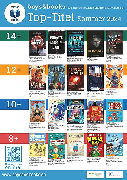 Alle Buchempfehlungen von boys & books für den Lesesommer 2024 samt Inhaltsangaben, Rezensionen, Leseproben und Tipps für die Leseförderung sind auf www.boysandbooks.de zu finden. Außerdem sämtliche Buchempfehlungen seit 2017.