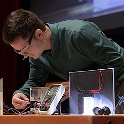 Das LFZ Karlsruhe war auch in diesem Jahr mit 2 Workshops wieder dabei. Nach einem spannenden Vortrag von Prof. Matthias Ducci konnten die Teilnehmenden die Versuche selbst ausprobieren.
