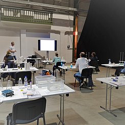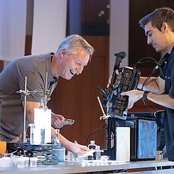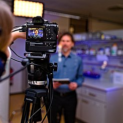 Für einen Bericht in der Sendung "SWR Aktuell Rheinland-Pfalz"(01.10.2020, 19:30 Uhr) wurden während der Fortbildung Interviews mit anwesenden Lehrkräften und Prof. Dr. Matthias Ducci geführt und einige Aufnahmen von den Experimenten gemacht.