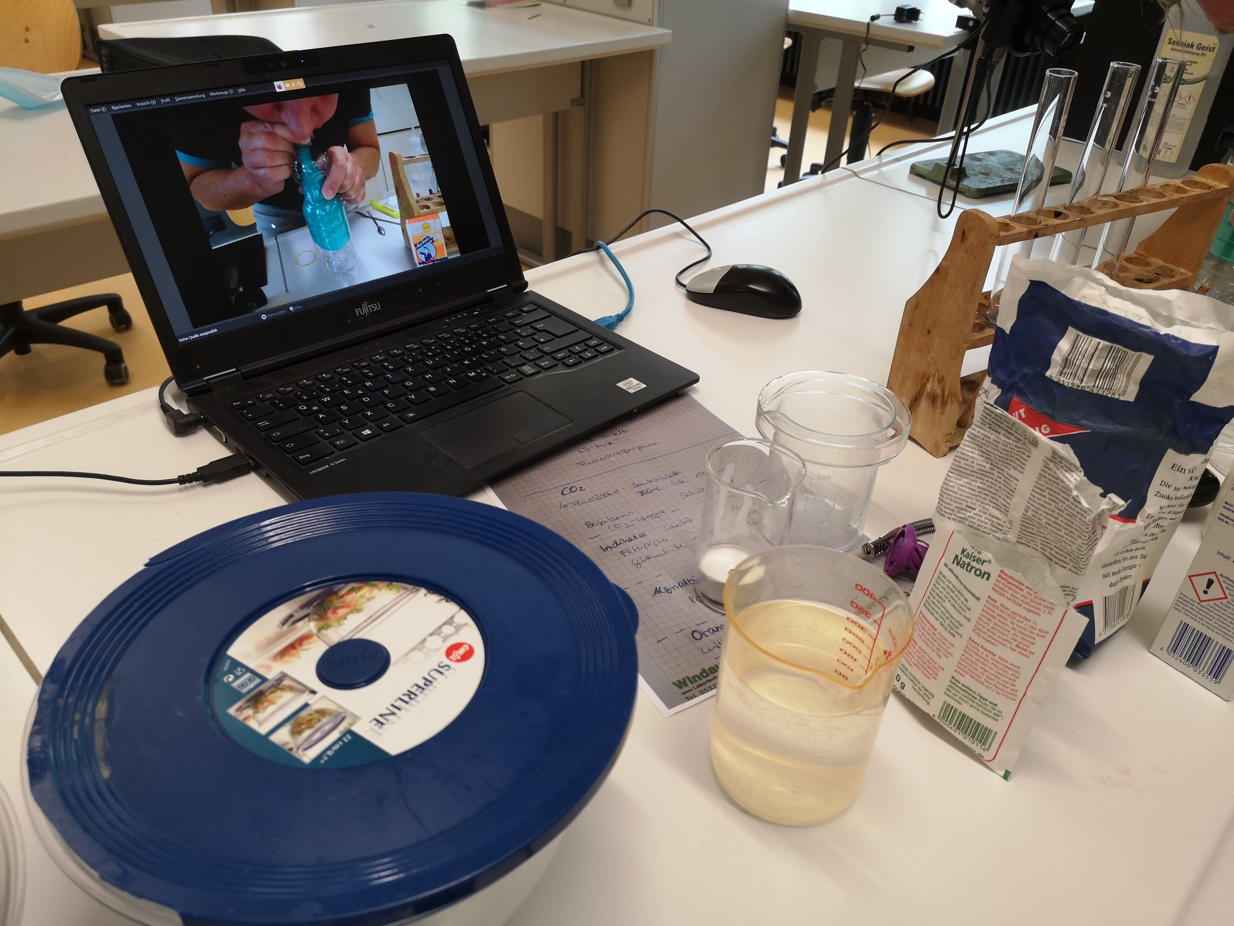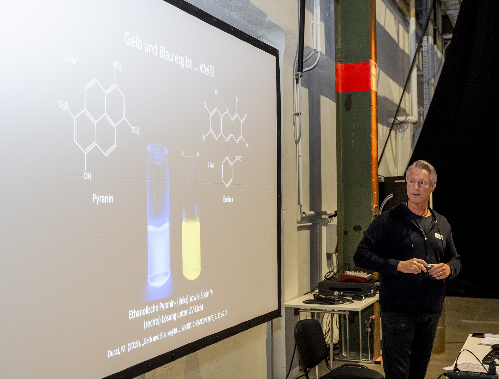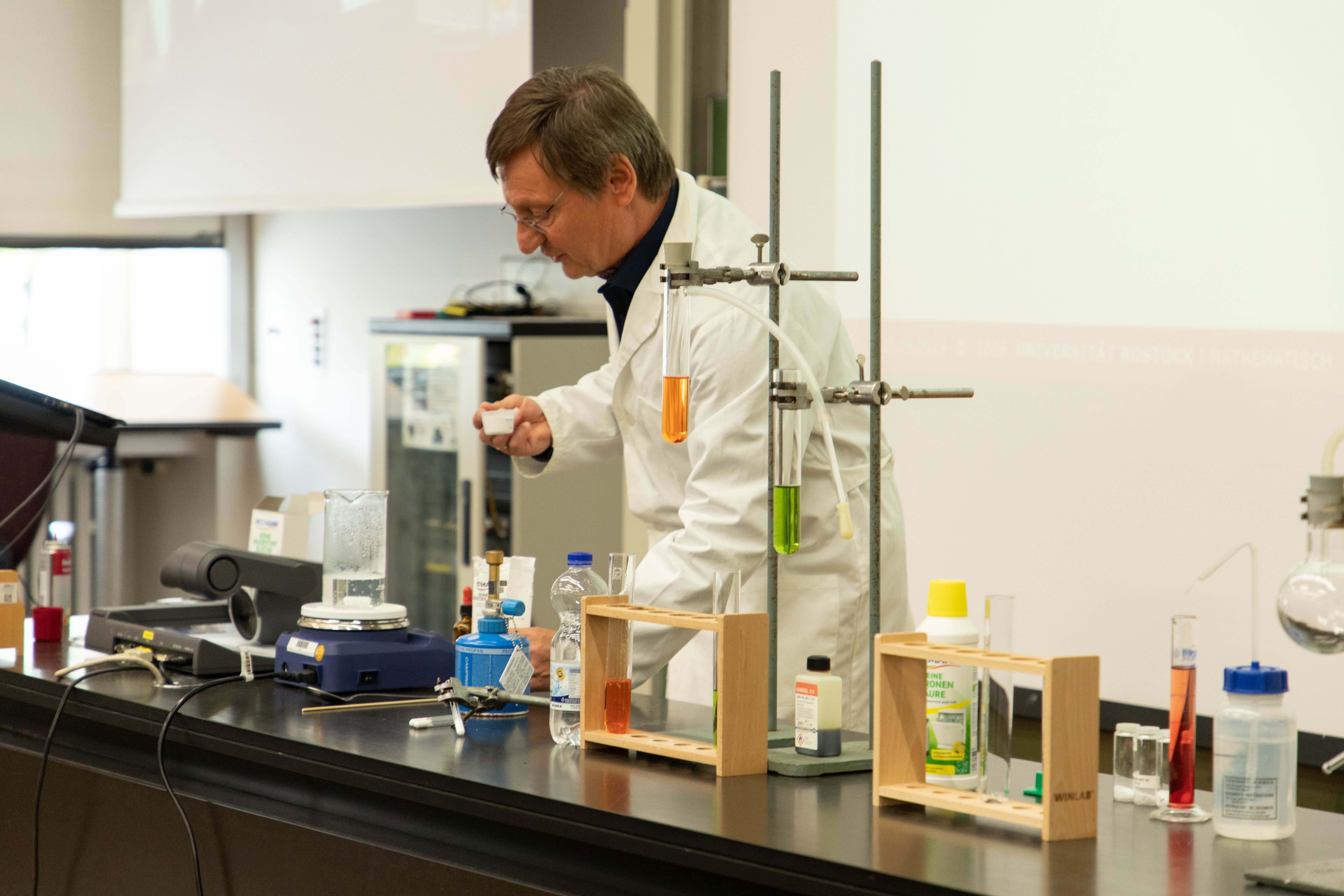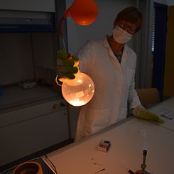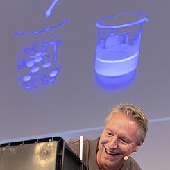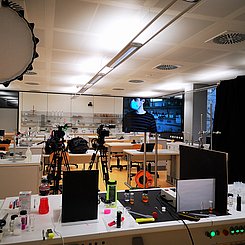 Die Experimentalvorträge und Interviews (Live-Schaltungen u. a. zur Johanna-Wittum-Schule nach Pforzheim, zur Realschule am Rennbuckel und zur MIRO) wurden direkt aus den Räumen des Instituts für Chemie übertragen. Die Aufzeichnung können Sie sich auf der Homepage der Chemieverbände Baden-Württemberg noch einmal ansehen.