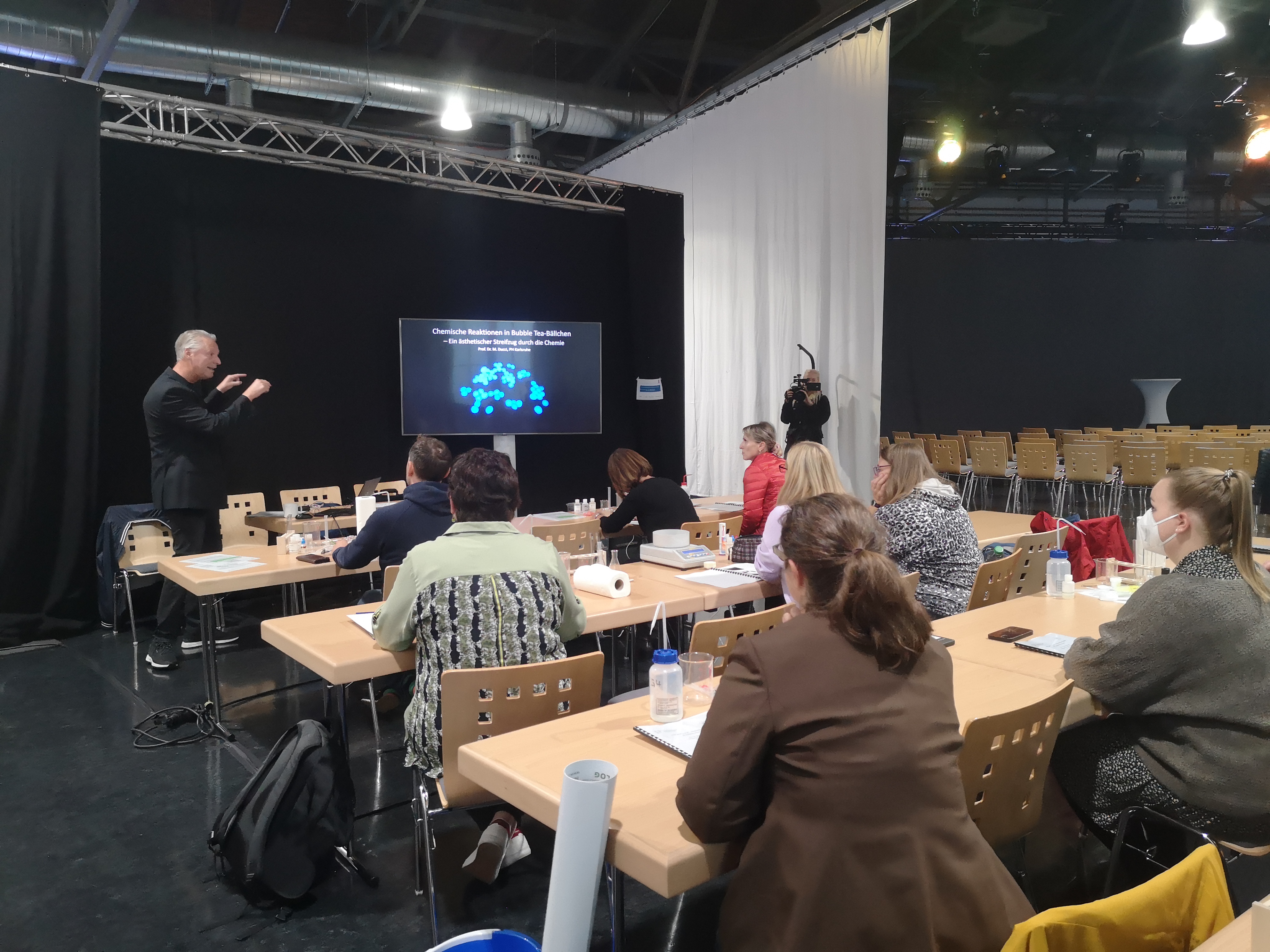 Nachdem der Kongress im letzten Jahr digital stattfand, konnten am 20. Oktober 2021 knapp 100 Lehrkräfte in Präsenz am diesjährigen Lehrerkongress der chemischen Industrie in Baden-Württemberg in Bruchsal teilnehmen. Neben zwei Experimentalvorträgen von Prof. Dr. Matthias Ducci (PHKA) - „Diazotypie“ – Ein bildgebendes Verfahren mit Diazoniumsalzen" und Prof. Dr. Marco Oetken/Dr. Dominik Quarthal „Perspektiven nachhaltiger Energiegewinnung“ wurde das Programm durch zahlreiche Infoforen und -stände ergänzt.